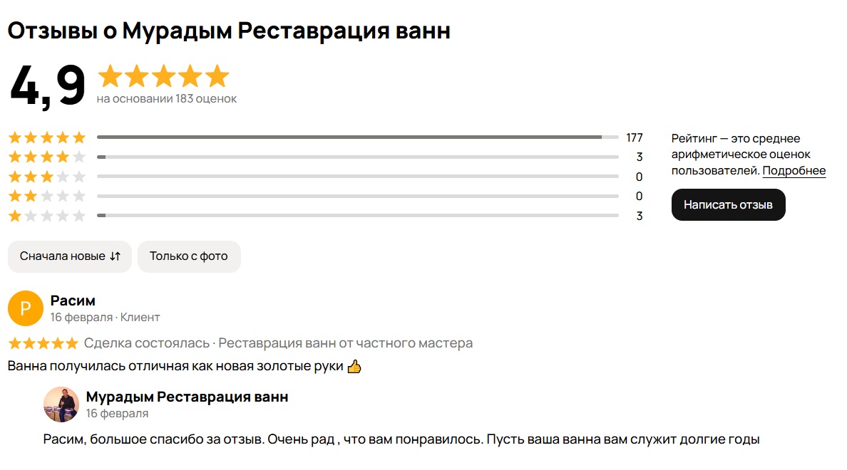 Выбирайте мастера по отзывам!